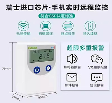 設(shè)備內(nèi)置大容量鋰電池也外接電源供電,內(nèi)置蜂鳴器,具有超高低溫報(bào)警的功能,溫濕度超限微信會(huì)實(shí)時(shí)推送。