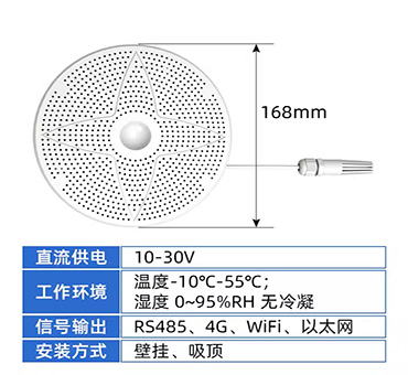 集多種測量要素于一體,最多可同時集成11種測量要素。專用于公廁環(huán)境檢測,選用專用于公廁環(huán)境的NH3、H2S傳感器,靈敏度高可測量溫度、濕度、PM2.5、PM10、大氣壓力、光照、噪聲、異味、TVOC、CO2、甲醛、O3、CO、H2S、NH3等多種要素。采用圓形弧面殼體,配合我們提供的底座可吸頂安裝也可壁掛安裝。