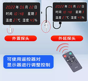 ▇采用大尺寸面板,紅光高亮數(shù)碼管,白天黑夜乃至強(qiáng)光下都可清晰顯示。萬(wàn)年歷款可視距離>15m ,溫濕度款可視距離>35m。